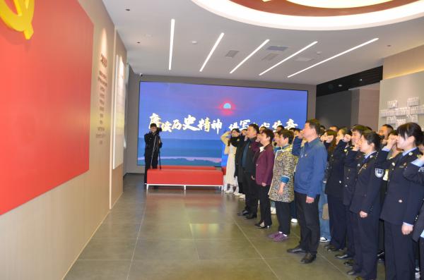 参观结束后,大家面对鲜红的党旗,重温入党誓词。
