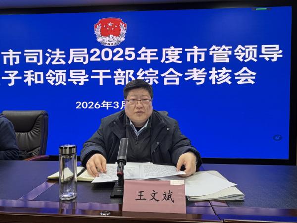 3月6日下午,市司法局召开2025年度领导班子和领导干部综合考核会议。市司法局党组书记王文斌主持会议。市委综合考核第十二组副组长、阜阳工业经济学校纪委书记张少民出席会议并作动员讲话。局领导班子全体成员,机关副科级以上干部、二级机构主要负责人、二级主任科员以上职级人员和局机关各科室以及二级机构人员代表参加会议。